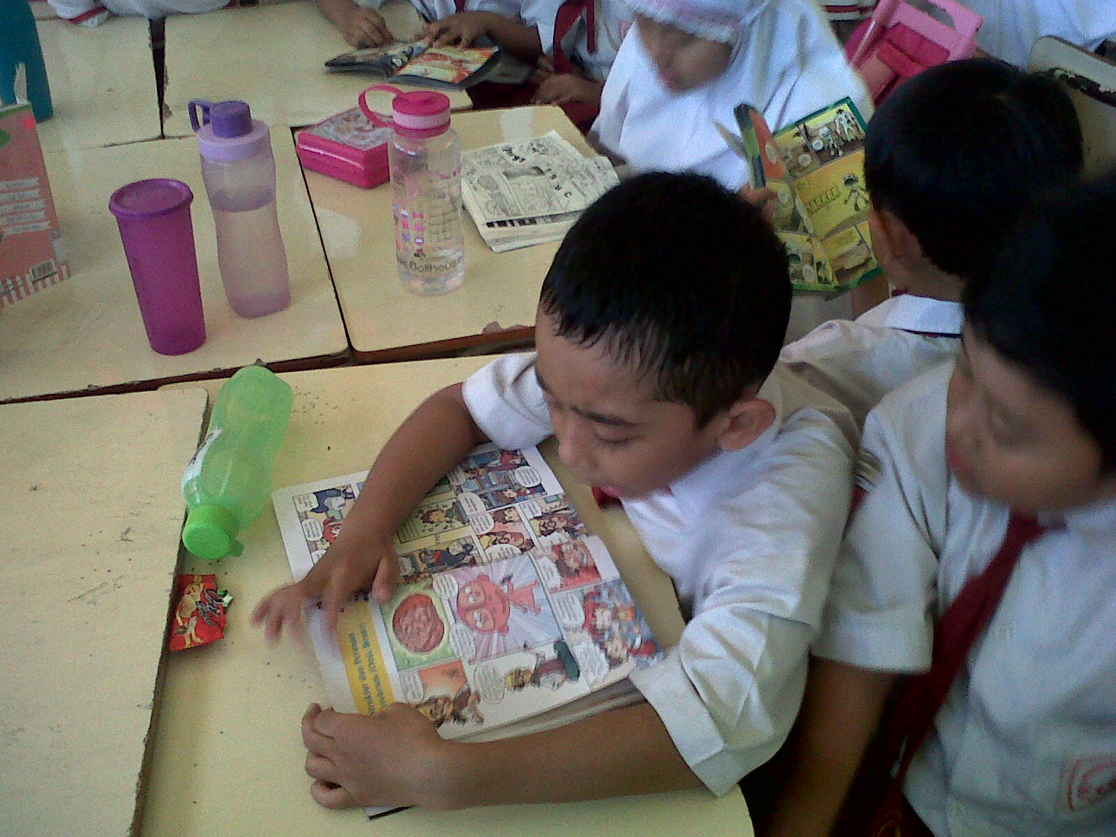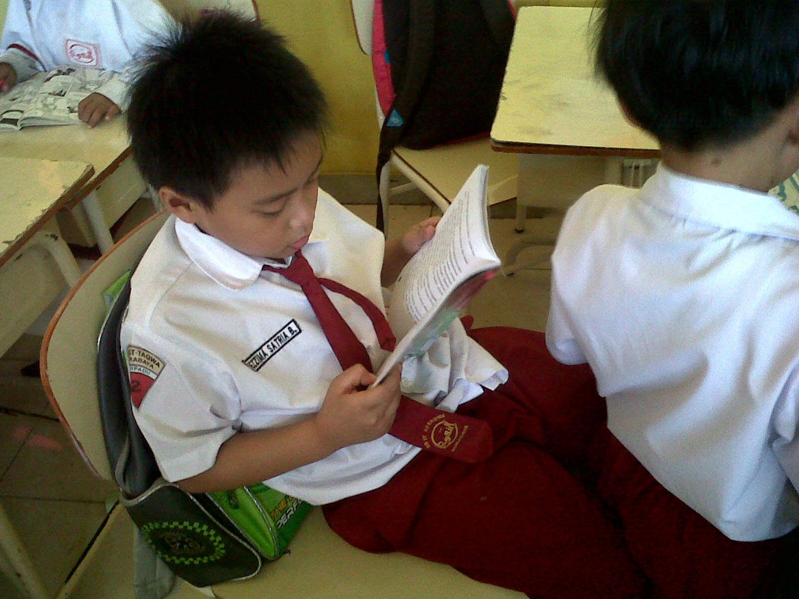 I can sense that the academic environment at At-Taqwa has great potential for literacy programs to develop. Its library, young and energetic teachers and staff, sufficient infrastructure, and for sure a good leadership. All are characteristics of a literacy-oriented school. And class 2C did not want to wait too long to start its reading program. The two teachers decided to use some amount of time remaining after the Qur’anic reading time to do free voluntary reading. From Adzra, I knew that the kids were taken to library at recess time to pick any books they liked. They were then given time to read the book of their choice after the Qur’anic reading time. What a smart move!
